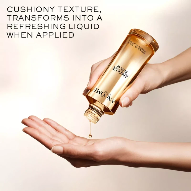 Absolue Rose 80 Essence-in-Lotion is a hydrating toner that helps to accelerate skin surface cell renewal for visibly more radiant looking skin. Formulated with 80% Rosewater & rose extracts, including, Perpetual Rose Extract, Centifolia Rose Extract, & Damescena Rose Oil and in combination with Proxylane and Hyaluronic Acid this formula helps to visibly improve overall skin appearance. In one week, skin feels soothed, smoother, and looks fresher. In 4 weeks, skin feels suppler, and looks more radiant. This hydrating toner formula transforms upon application from a cushiony texture into a refreshing fluid that is absorbed quickly and does not leave skin feeling greasy, or sticky.
